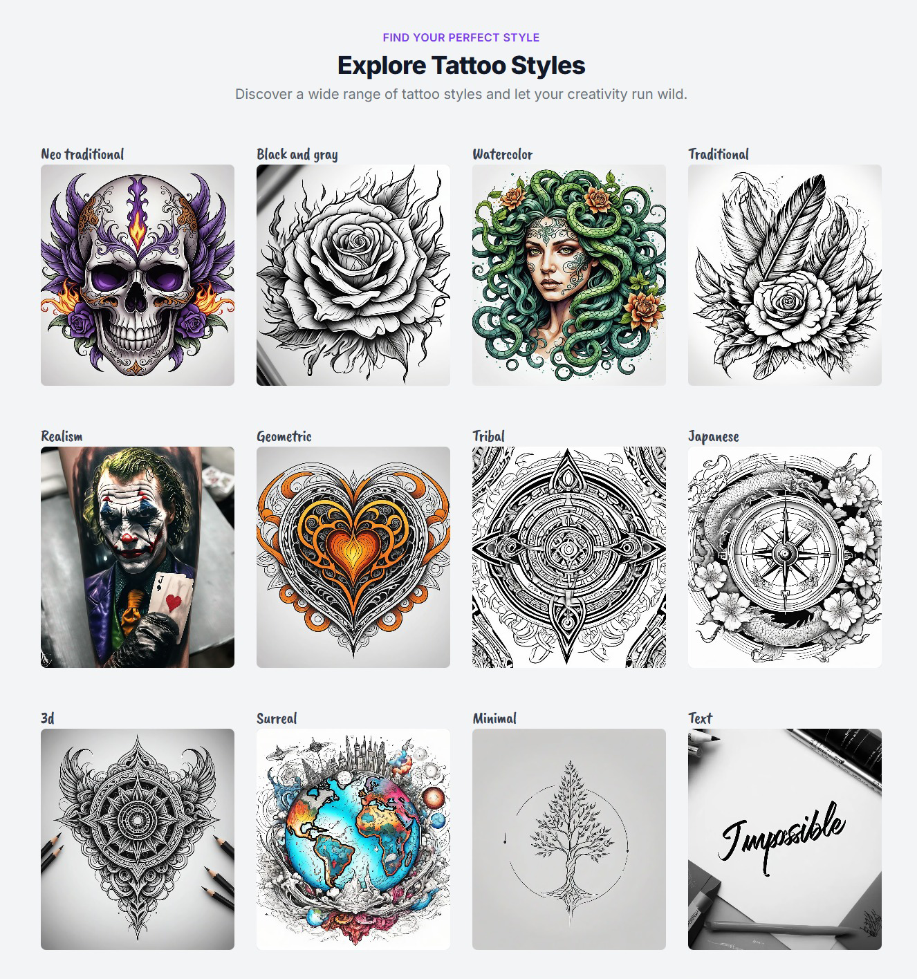 - Multiple Style Options: The platform supports an extensive selection of tattoo-specific styles for generating sketches, including Neo-Traditional, Black and Gray, Watercolor, Traditional, Realism, Geometric, Tribal, and Japanese, ensuring I can match the aesthetic I want.